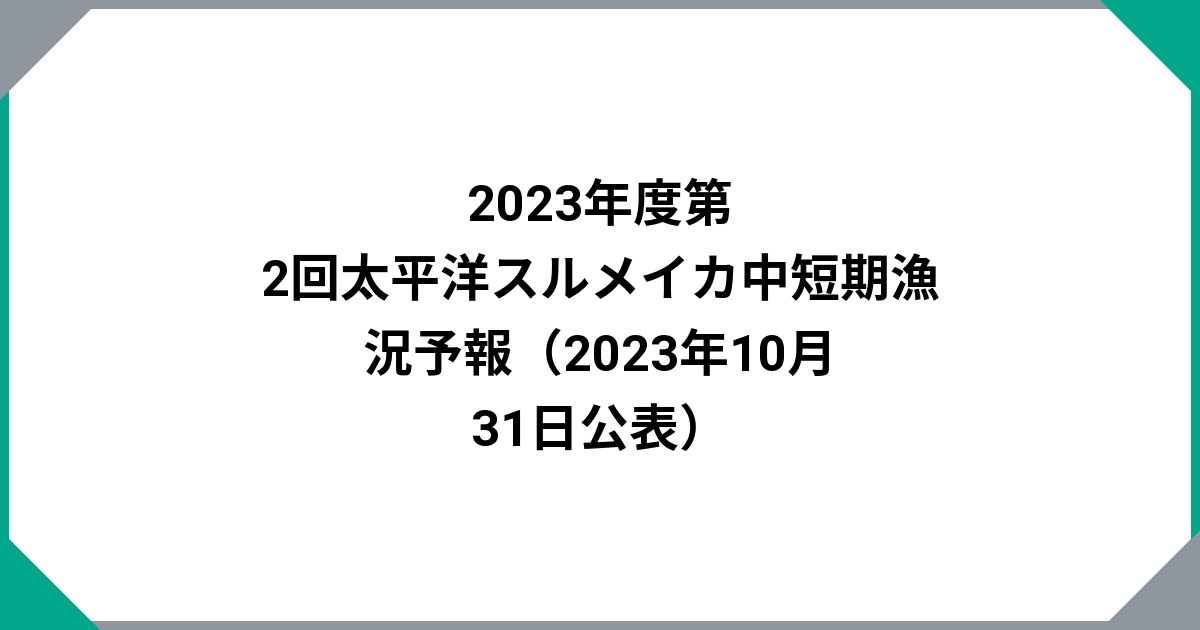2023年度第2回太平洋スルメイカ中短期漁況予報(2023年10月31日公表)