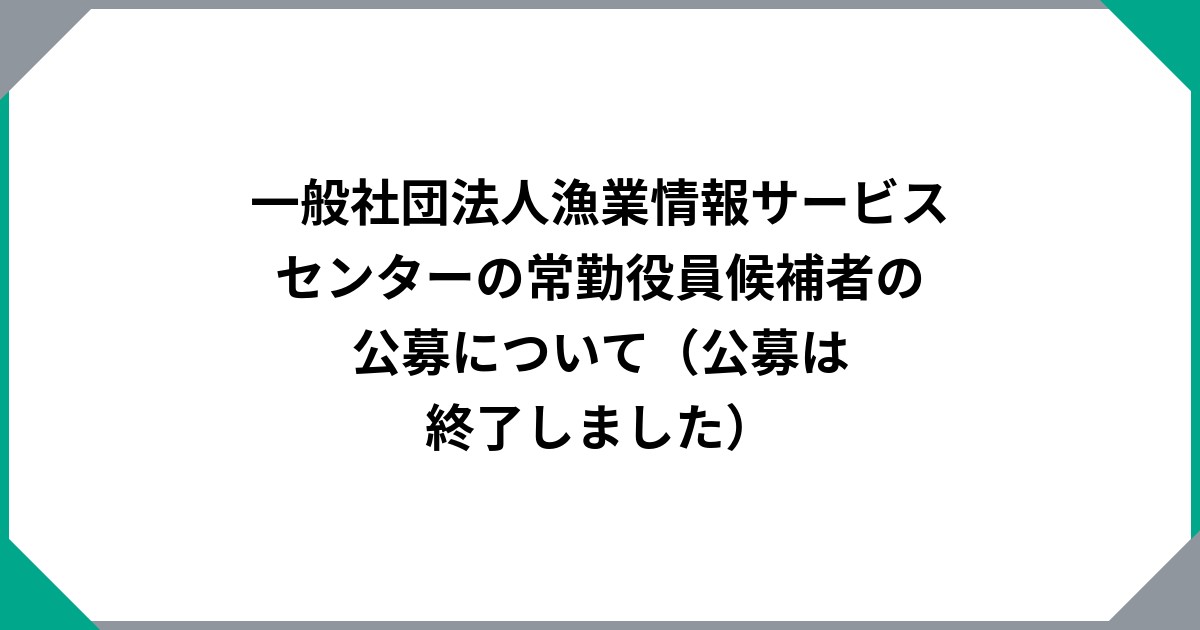 一般社団法人漁業情報サービスセンターの常勤役員候補者の公募について(公募は終了しました)